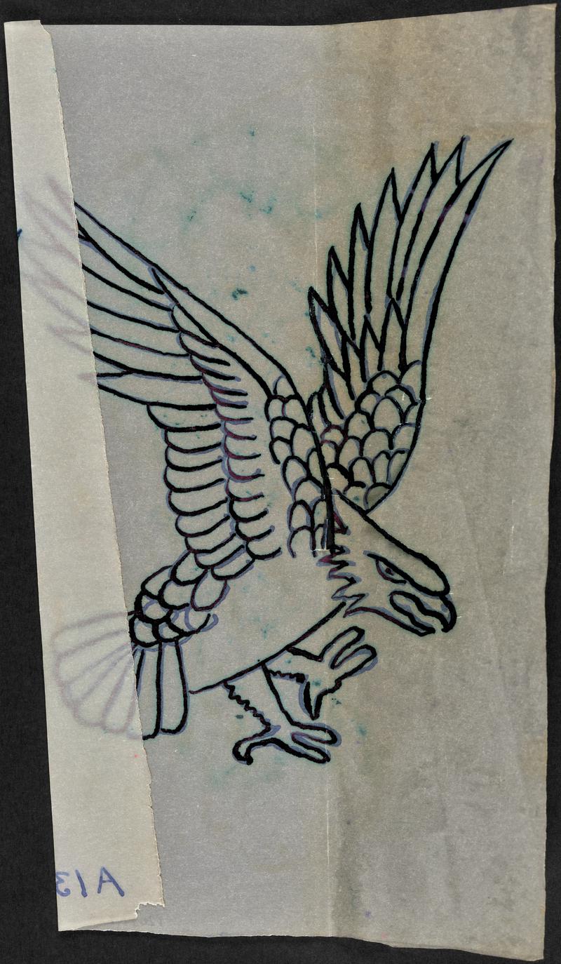 Pencil drawing on lined paper. Two swallows underneath a flower with wings.