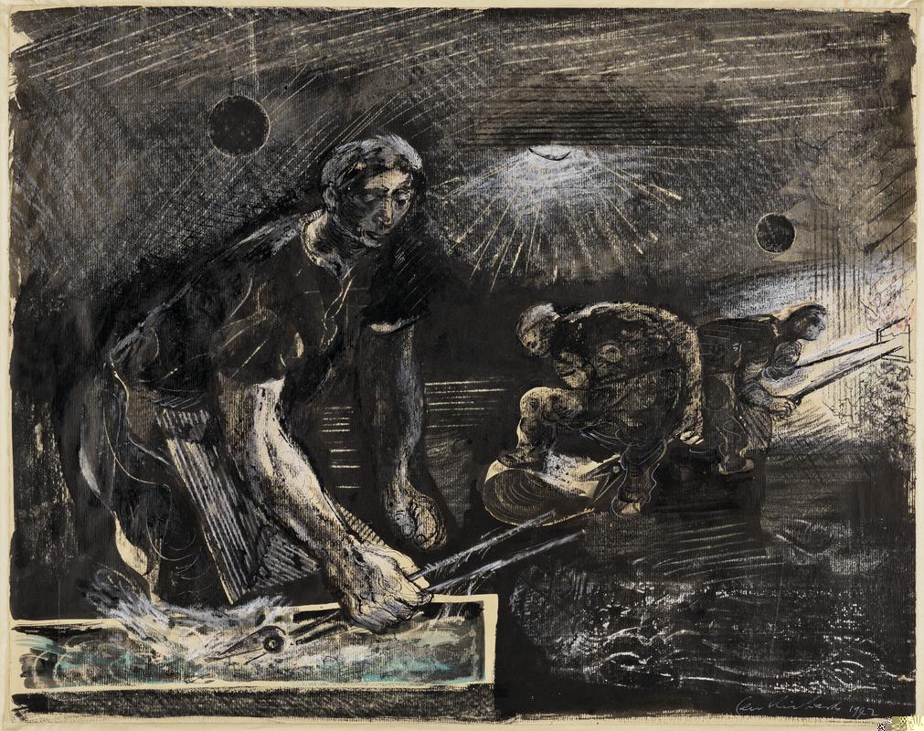 The landscape of the Gower was a strong source of imagery - much of his work was also inspired by poetry and music: a crowning achievement was the series of paintings and construction on the theme of Debussy's La Cathedrale Engloutie (The Sunken Cathedral))
