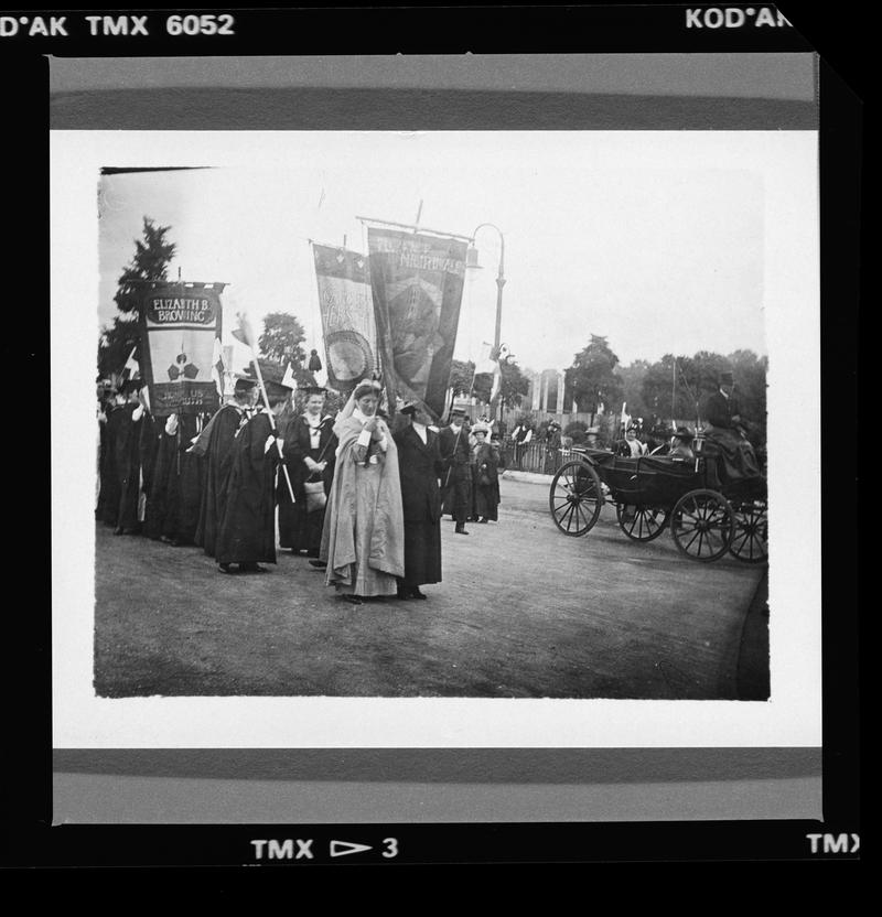 Photograph of statue of Emmeline Pankhurst erected in Victoria Gardens, London, 1930. One a collection of items belonging to Welsh suffrage activist Kate Williams Evans.