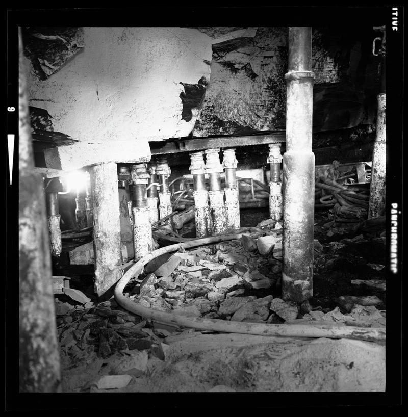 Negatif ffilm lliw yn dangos dramiau ger gwaelod y pwll, Glofa Cwmtyleri.