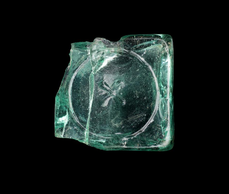 Clear round bottle with neck and stopper. Marked 'TAB. PULV. IPECAC. ET. OPII GR.V'.