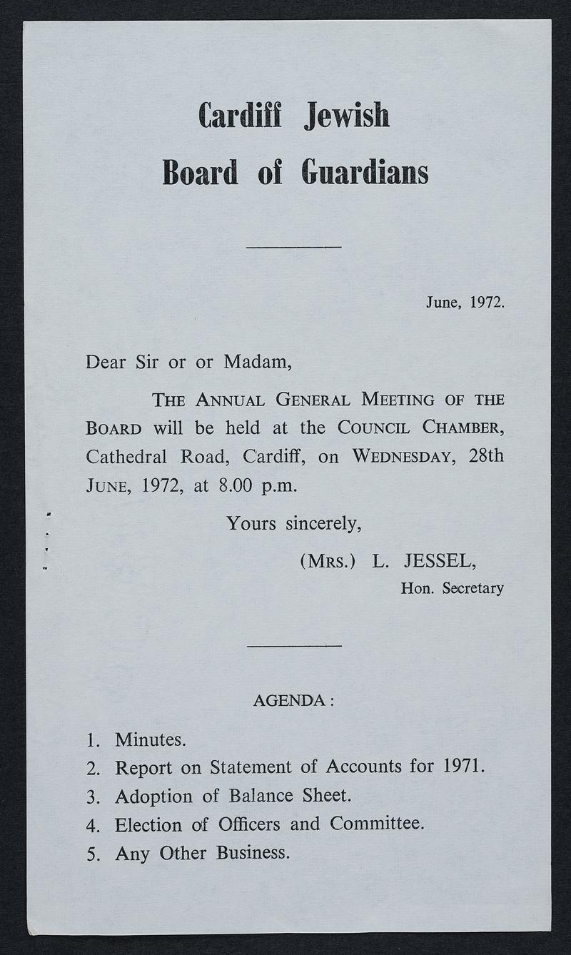 Business card 'J.G. Van Der Walt, Property Growth Assurance Company Limited', Cardiff.