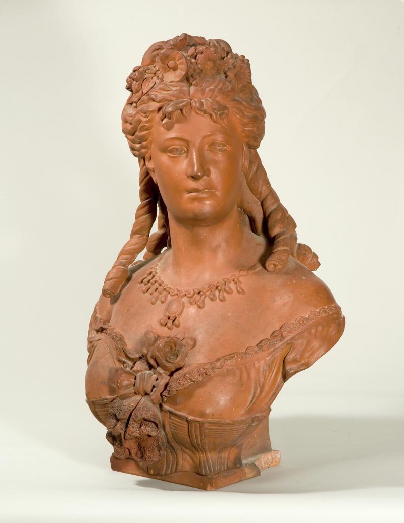 Terracotta diagonally ridged floor tile with embossed inscription on reverse.