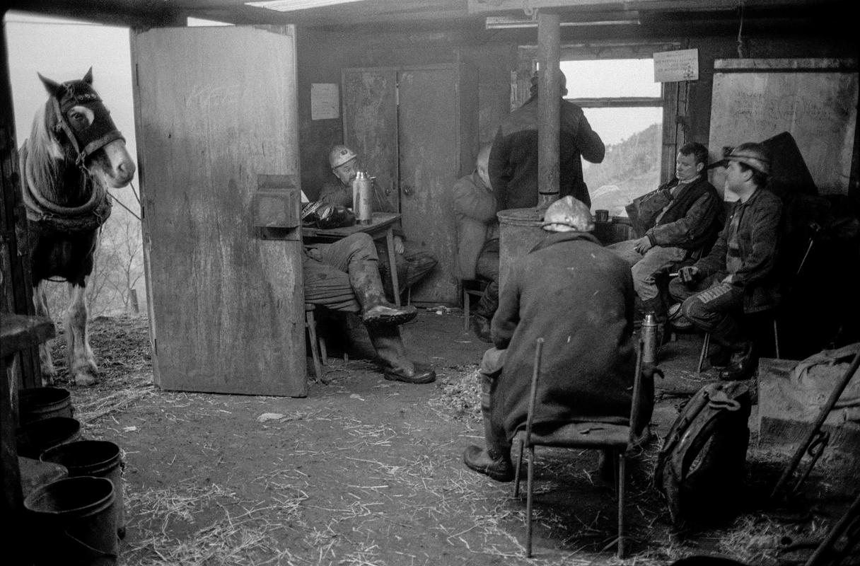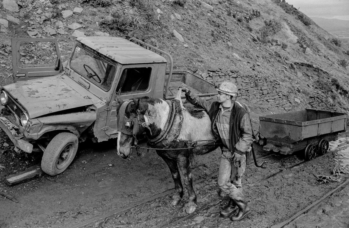 Black Mountain Ltd. Pit ponies each have an individual handler who is responsible for its health, welfare and cleanliness. Neath, Wales