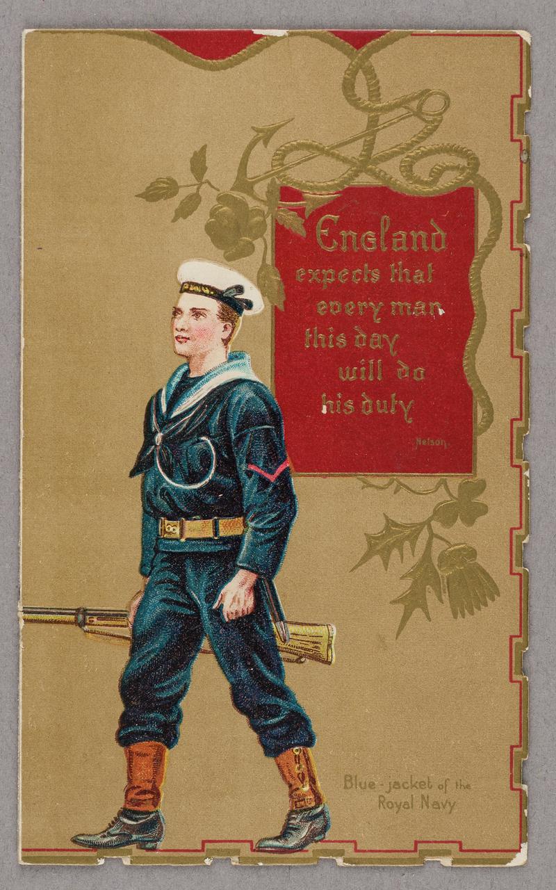 Unused christmas card, embossed decoration; printed in shades of grey; tree and flower design; verse and christmas greeting printed inside in gold.