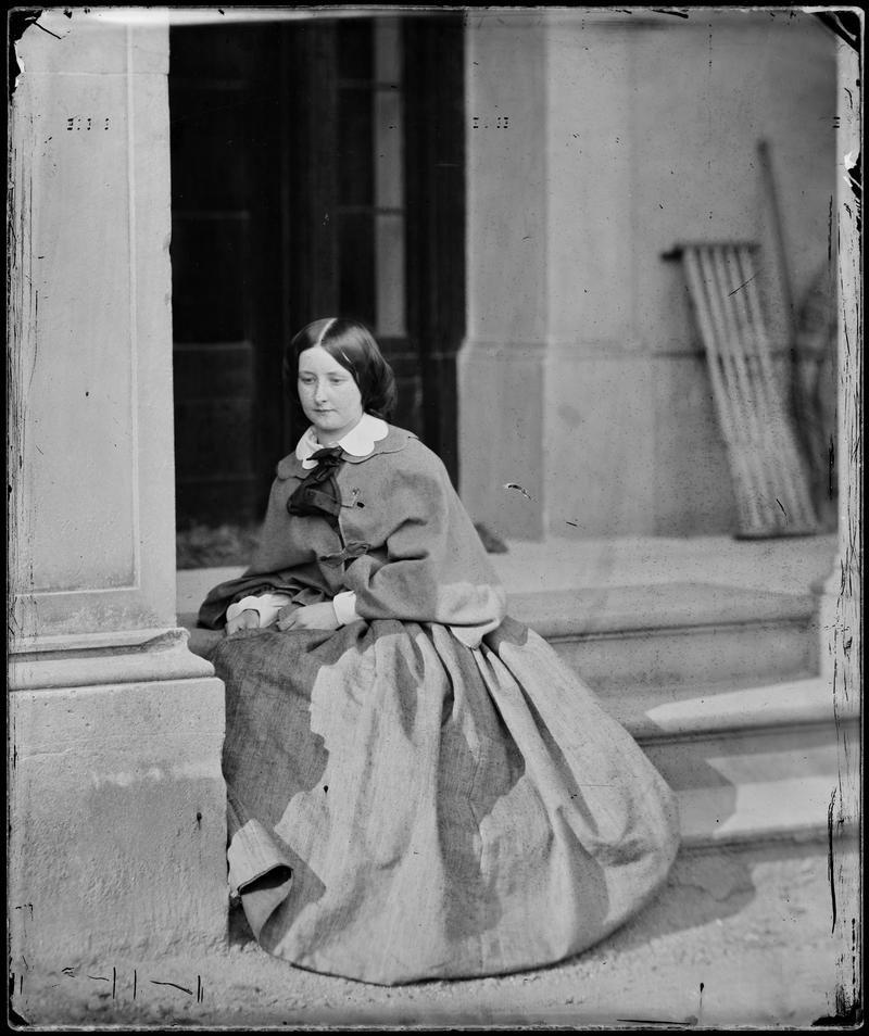 Glass negative taken on stereo camera showing Lucy Llewelyn seated.
