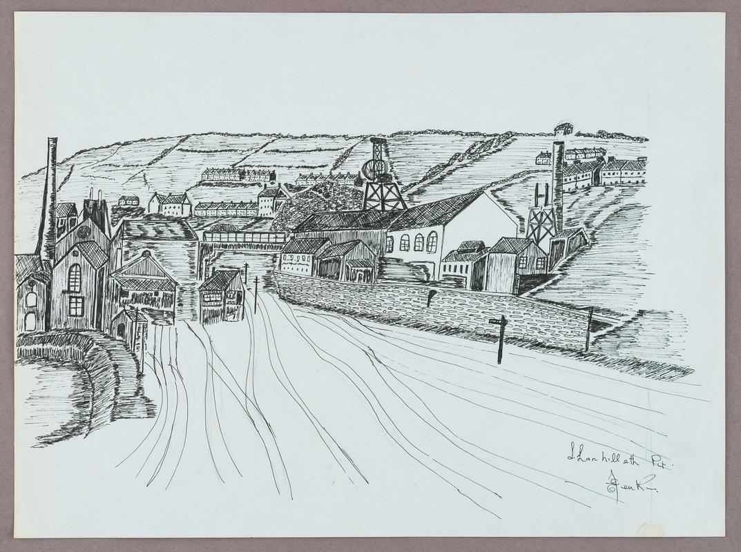 Generl view of Penybont Colliery. Title, signature of artist and date on reverse.