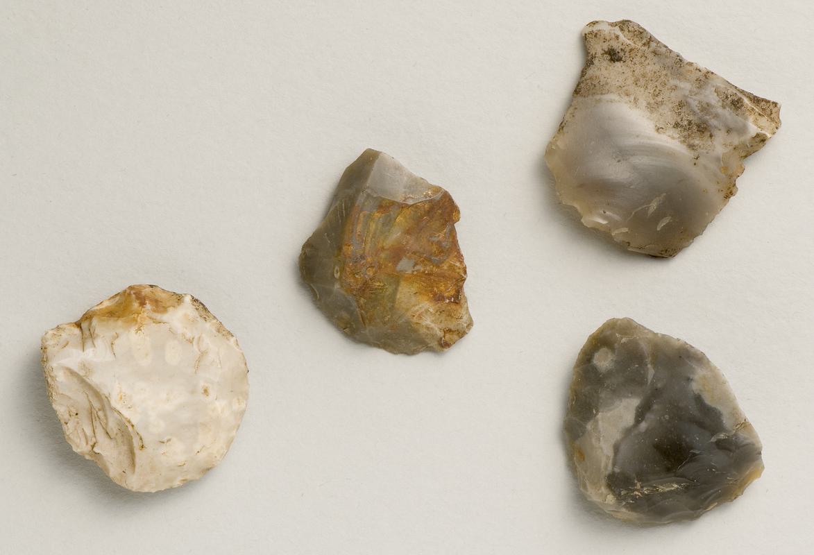 Fragment of a Neolithic/Bronze Age flint convex scraper fragment.