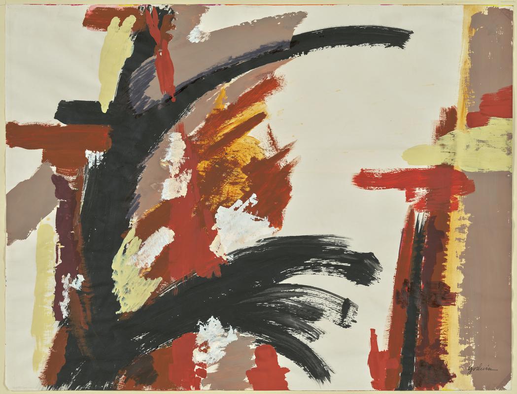 Dyfrlliw Gweithiau ar bapur Celf Gain 23_CADP_Feb_23 Haniaethol Coch Melyn Mynegiadaeth Haniaethol Ôl 1945 Artist Benywaidd CADP content Artistiaid y 21ain ganrif