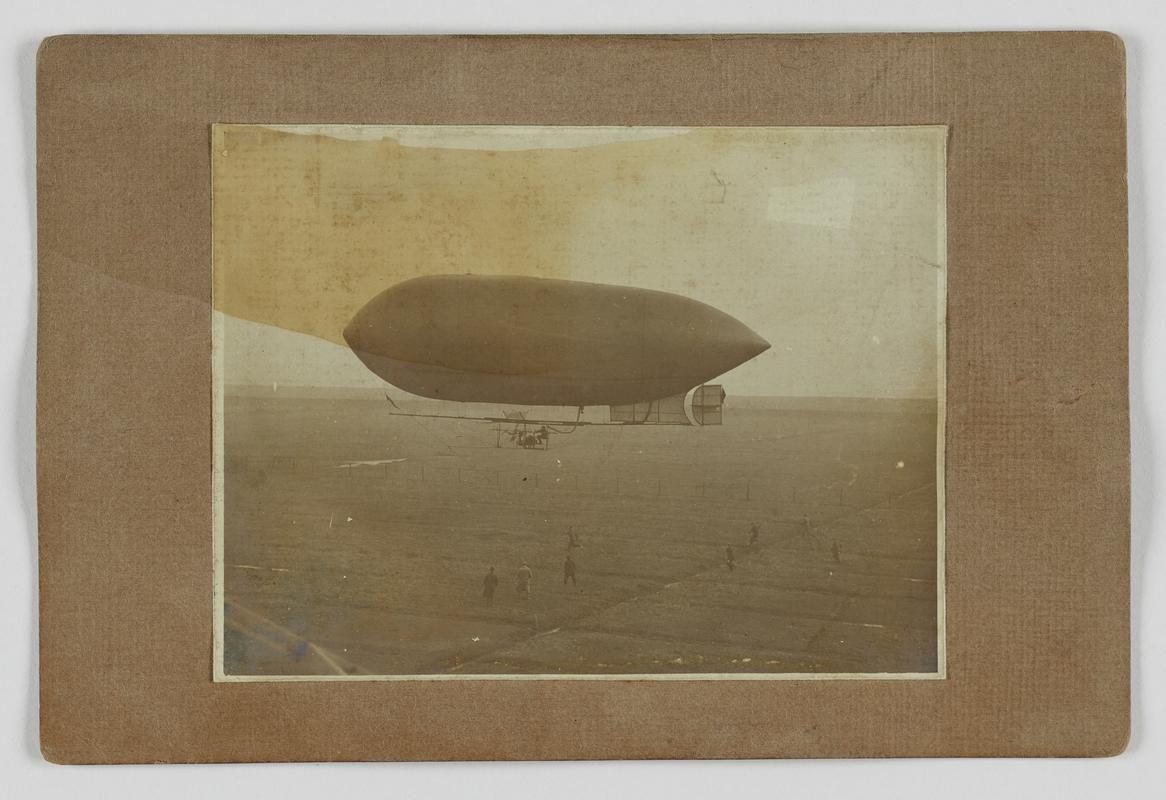 Photograph of the engine from Ernest Willows' 1910 airship CITY OF CARDIFF. View of engine on display in Museum.