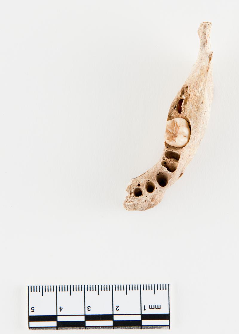 Strap slide with three transverse ribs ending in prominent spurs on one side. Complete back loop surviving.