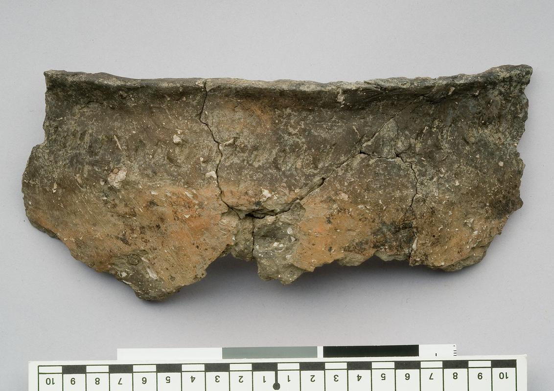 Nodiadau: GRID REFERENCE TO BE TREATED AS CONFIDENTIAL; discovered unstratified in spoil during machining, probably from the central south side of Trench 1, south of the grave pit.