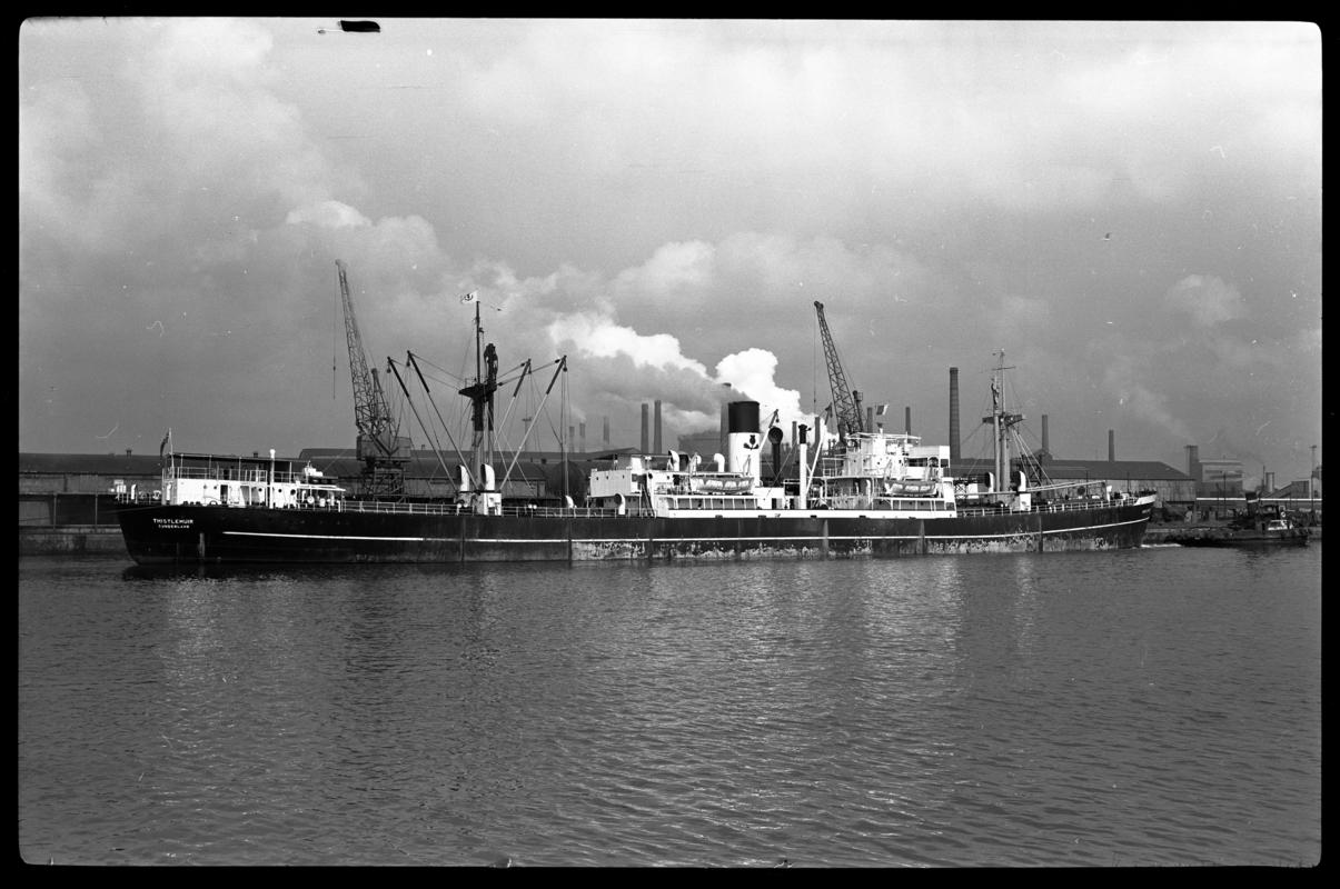 ¾ Starboard bow view of S.S. SEAMINSTRAL, Cardiff Docks, 1948.