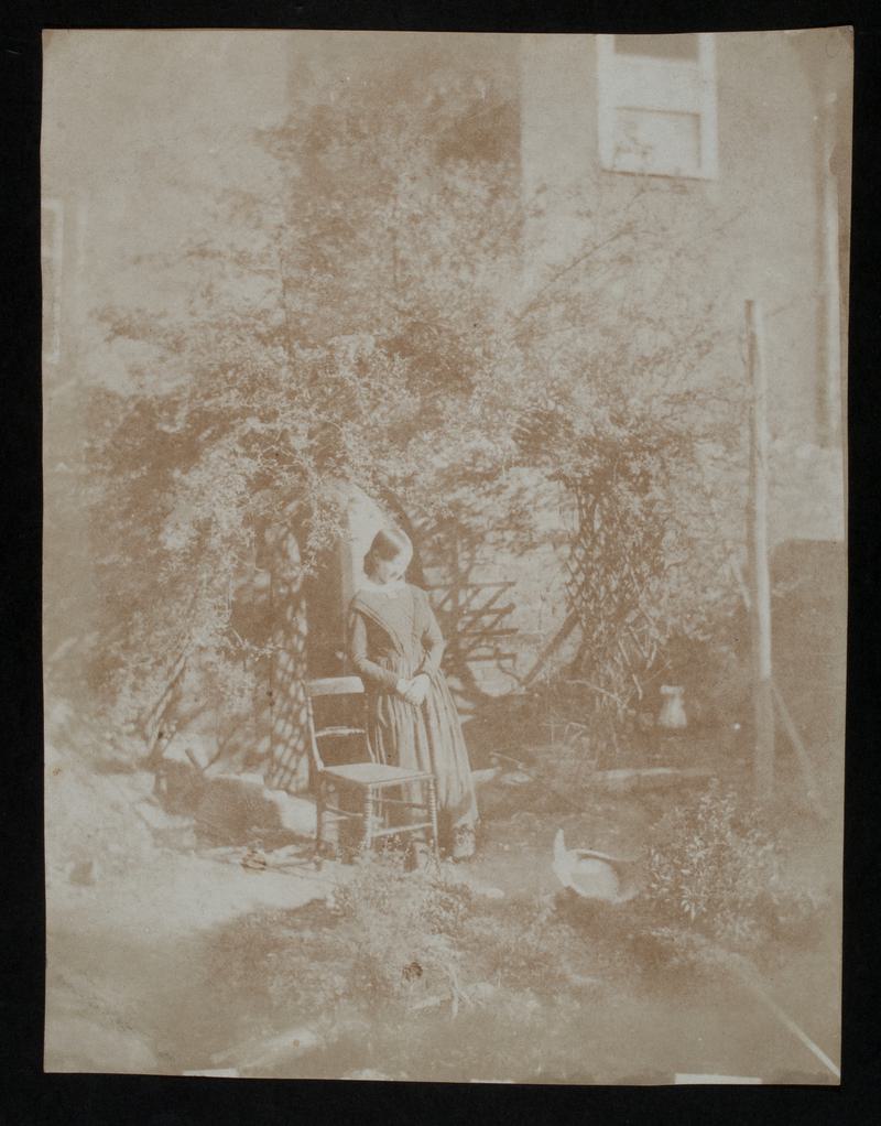 Salted paper print. Close up view of roses growing in garden.
