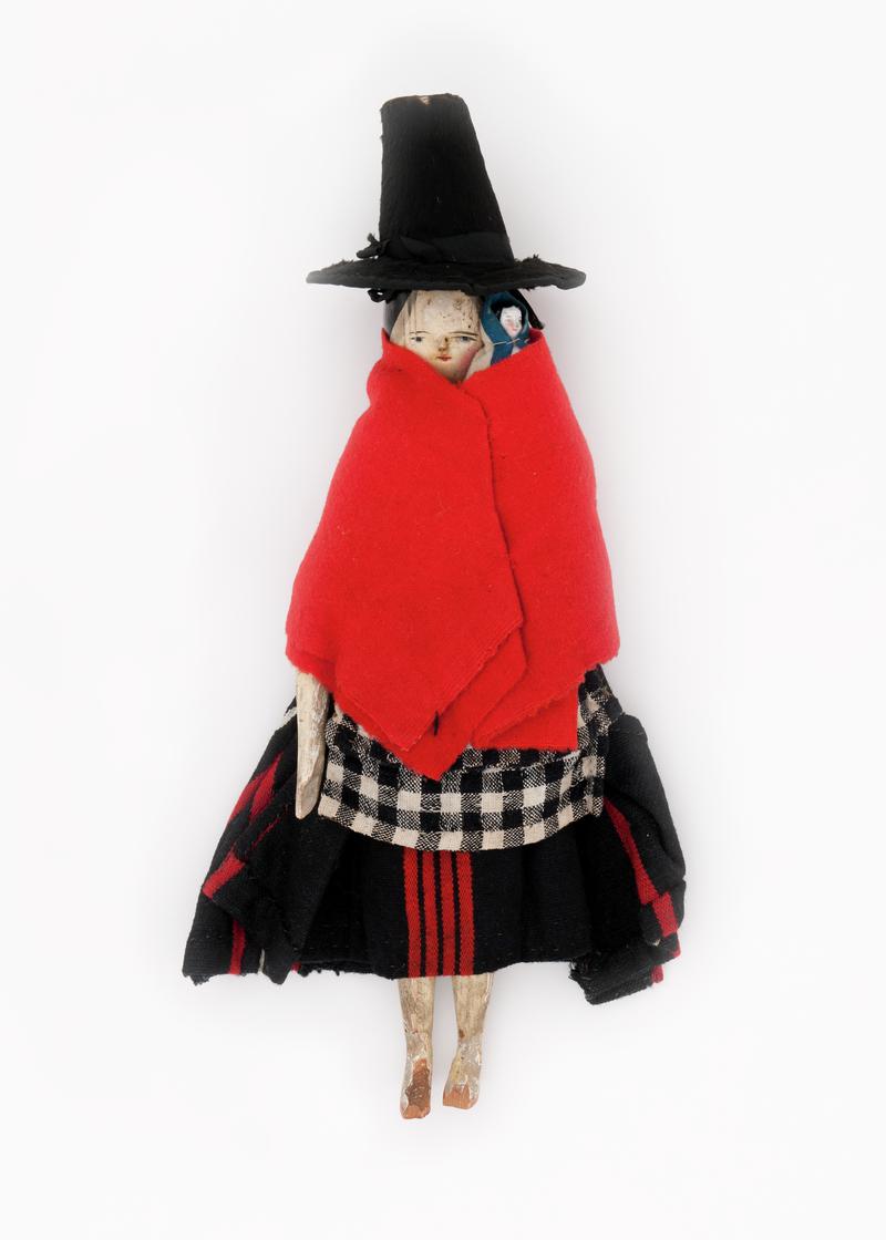 Mrs. Alice Mary Hughes in Welsh costume knitting.