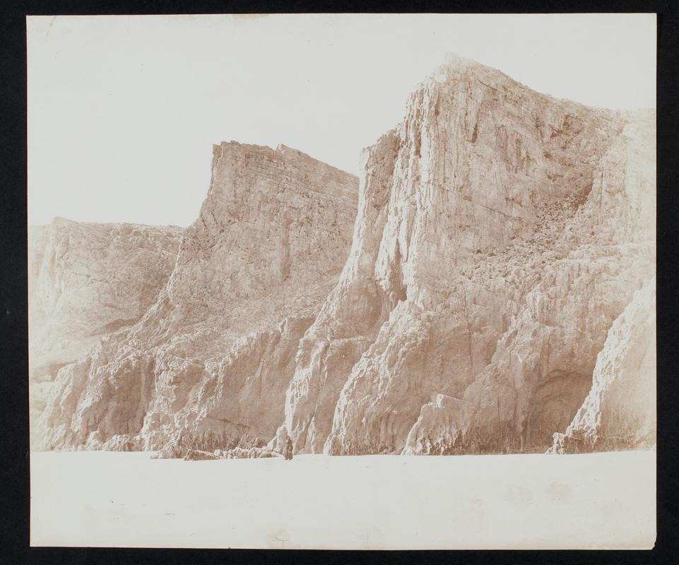 Salted paper print. Arch in cliff with beach in the foreground. Possibly Three Cliffs Bay.