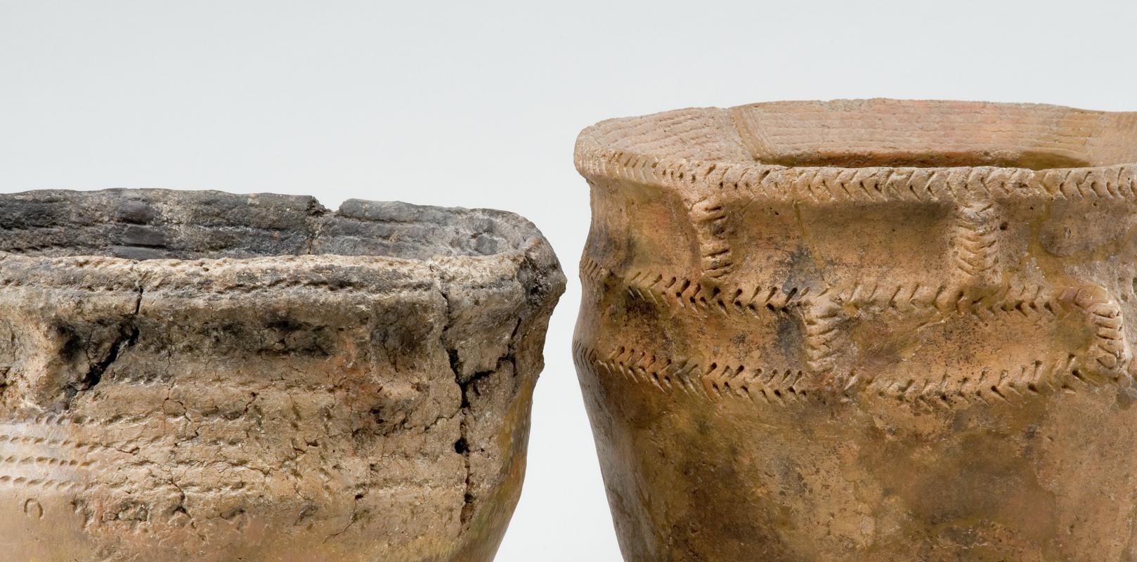 With cast flanges, widely splayed blade and flat butt. There is a cross-bar, a semi-circular mouilding, which links the lower ends of the flanges, and a diagonal tooling on the flanges. Recent cleaning has given the implement a polished golden surface.