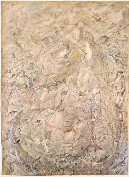 , dyfrlliw cymhleth iawn a gwblhawyd ym 1963, yn dangos cariadon y chwedl Arthuraidd yn wyneb eu tranc.
