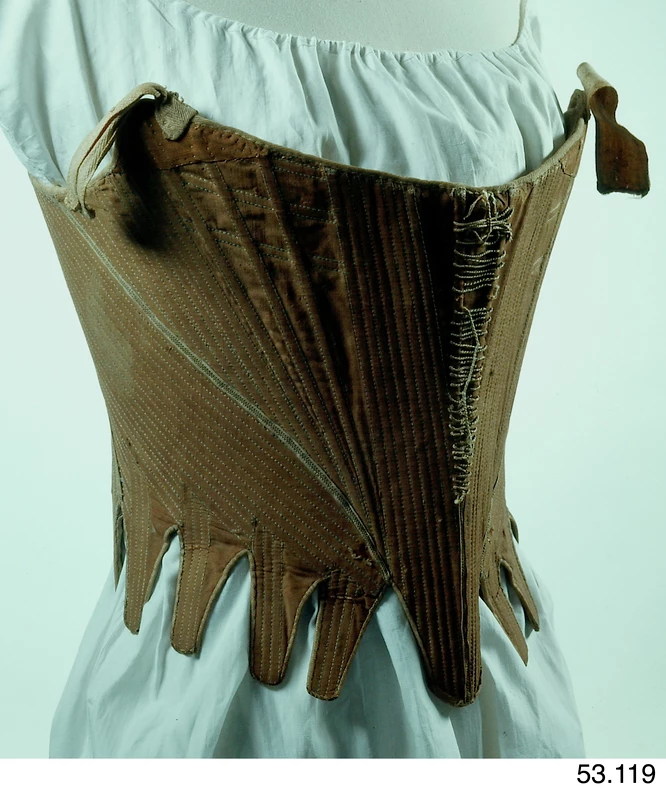 Wedi'i addurno â motiffau a lythrennau, defnyddwyd Pren Staes i gadw torso menywod yn syth ac i eistedd yn agos at y galon. Yn y llun mae Pren Staes o Lanwrtyd, gyda'r llythrennau RM ac IM.