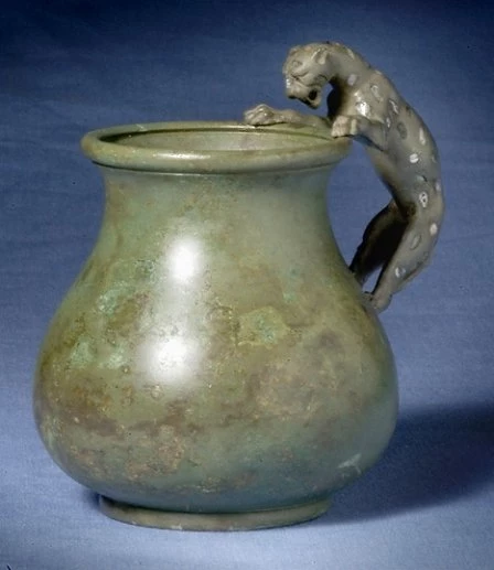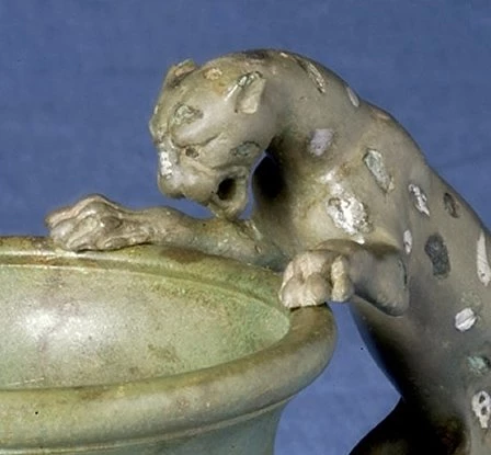 - Roedd dewis llewpart yn addas iawn ar gyfer cwpan gwin, gan ei fod yn greadur pwysig ym mytholeg y Rhufeiniaid, yn gydymaith i Bacchws, duw gwin, a addolwyd drwy wledda, diota, cerddoriaeth a dawns.