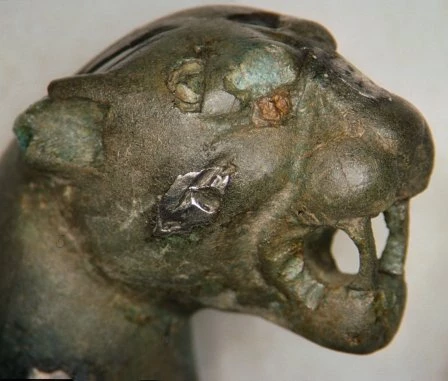 - Llenwyd tyllau'r smotiau ar y corff gydag arian, ac mae'n bosib mai ambr oedd y llygaid.