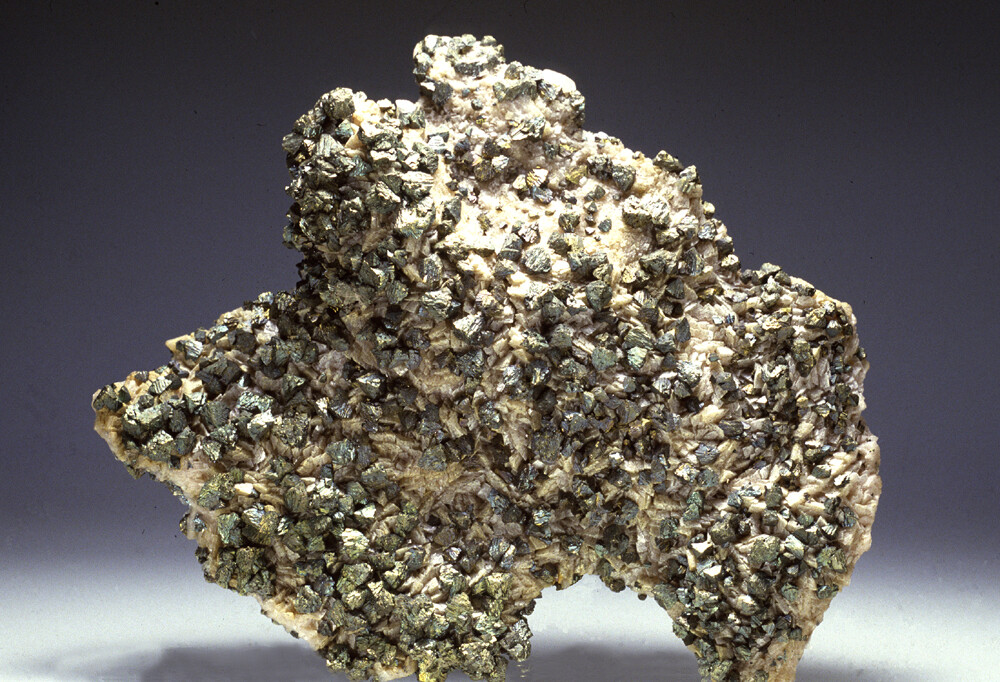 The copper-dolomite association consists of saddle dolomite (with its noticeably curved crystals) in association with major chalcopyrite and minor pyrite, forming replacement deposits in carbonate rocks. It occupies faults, bedding planes, joints and vugs within extensively dedolomitized limestones.