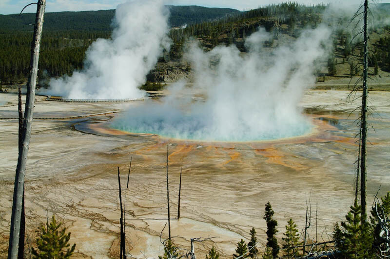 In volcanic districts, epithermal systems are common and they frequently reach the surface, whence the boiling hydrothermal fluids erupt as geysers and fumaroles. Many old epithermal mineral deposits represent the fossilised ‘roots’ of ancient fumarolic systems. Because such things are near-surface features, erosion often removes them in due course, which is why old epithermal mineral deposits are relatively uncommon worldwide. Most of them are of Mesozoic age or younger.
