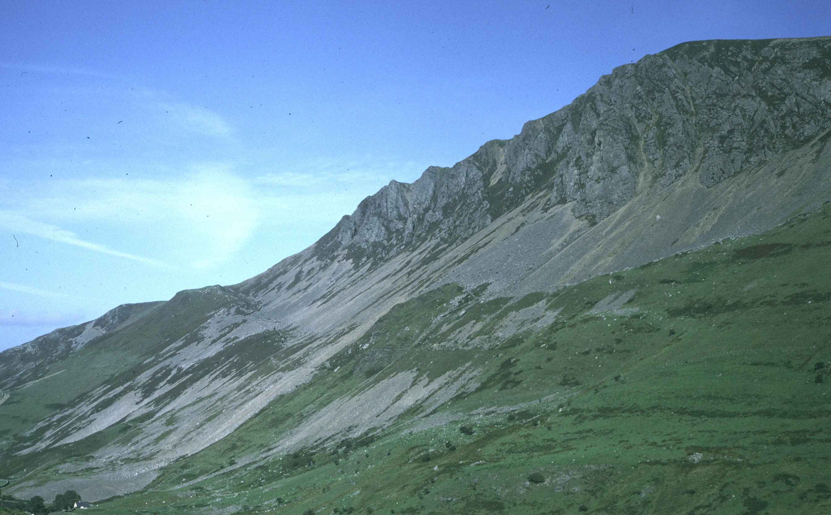 Acid volcanism played an important part in the early geological history of Wales. From around 600 million years ago, in the Late Precambrian, until Late Ordovician times (around 445 million years ago) explosive volcanicity produced large volumes of acid magma, now preserved as thick sequences of tuff. The famous landmark of Snowdon, is formed from such volcanic rocks. Although acid igneous rocks generally have simple mineralogies dominated by feldspar and quartz, in some instances more unusual compositions generate a more varied mineralogy. For instance the Mynydd Mawr intrusion in Snowdonia (Nockold, 1938) has a peralkaline composition, which is characterized by a high content of Na and K and relatively low Al. It therefore contains minerals low in aluminium, such as aegirine and riebeckite. The magmas also contained high levels of zirconium (Zr) and rare-earth elements as well as fluorine (F) and chlorine (Cl), and these are found in a variety of rare accessory minerals. Similar riebeckite-bearing rocks are found in western Llŷn, for example at Myntho Common (Croudace, 1982).