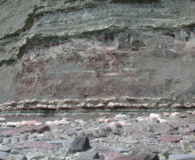 Also included within chemical sediments are evaporite deposits. The minerals within evaporites form by precipitation from solutions by evaporation - usually in arid environments such as desert salt-lakes. The most common minerals present are gypsum, anhydrite and halite (rock-salt), sometimes in sufficient quantity to be commercially mined. Evaporites occur within Triassic rocks exposed along the South Wales coast near Cardiff, where the beds of gypsum form conspicuous white layers in the red marls. All of these precipitated minerals have formed in place, without transport, and are referred to as authigenic.