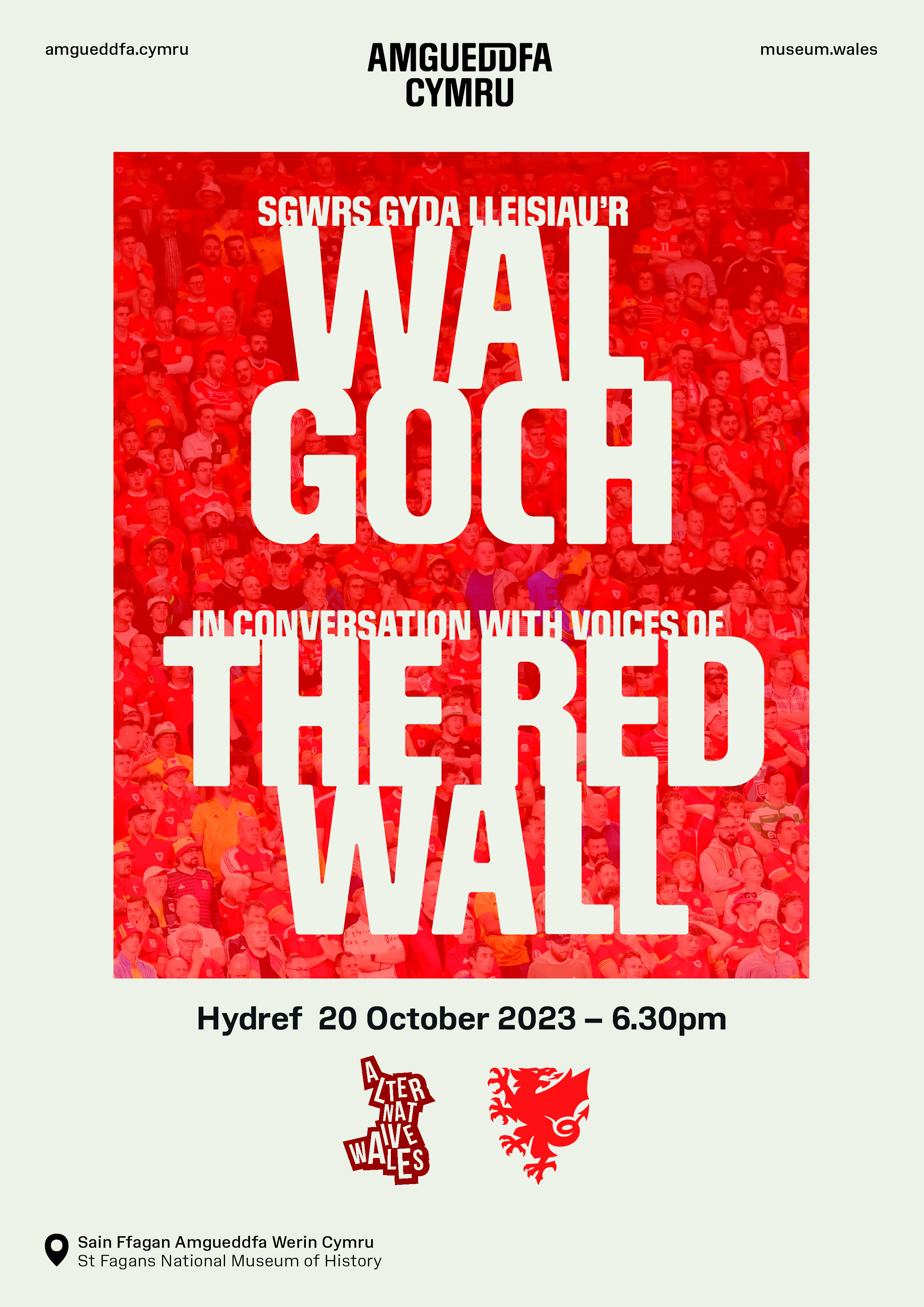 Ymunwch â ni am noson arbennig mewn partneriaeth â Chymdeithas Bêl-droed Cymru i ffarwelio ag arddangosfa Lleisiau’r Wal Goch ac i ddathlu diwylliant unigryw cefnogwyr pêl-droed Cymru. Dan arweiniad Ryan March o’r cylchgrawn a’r podlediad pêl-droed Alternative Wales, dyma gyfle i glywed mwy gan rai o’r unigolion a’r cymunedau sy’n rhan o’r arddangosfa